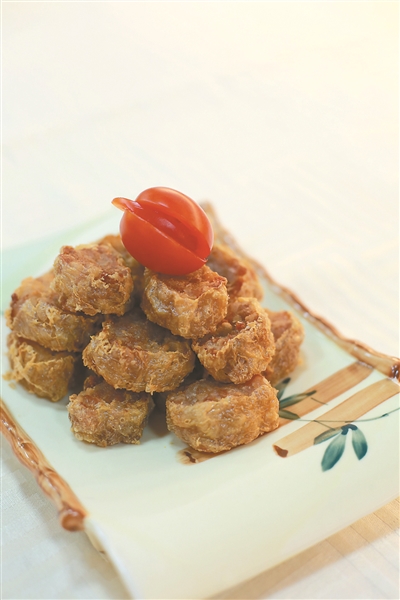 醉琼楼最早以东江菜打天下,东江炸腐卷、客家酱酿蛋角、萝卜丸等都是传统的客家菜肴。小小的萝卜丸,众人追着吃。华哥的萝卜丸里加了自家晒的腊味和鲜肉;炸腐卷用3分鲮鱼肉、7分猪肉为馅,用腐皮裹起,切了再炸。少东家年少时最爱吃这一口,常常扒完饭,才舍得吃它。后来,华哥接手以后,加入了新派粤菜元素。海鲈起片走油,配上捞过的西兰花,新鲜滑香,深得街坊喜爱;炸咕噜肉,干爽得就像刚洗过澡的白白猪,绝不油腻。原来,秘诀在于半肥瘦的猪肉事先要炖煮过,去掉了油分,只留其香不留肥腻。